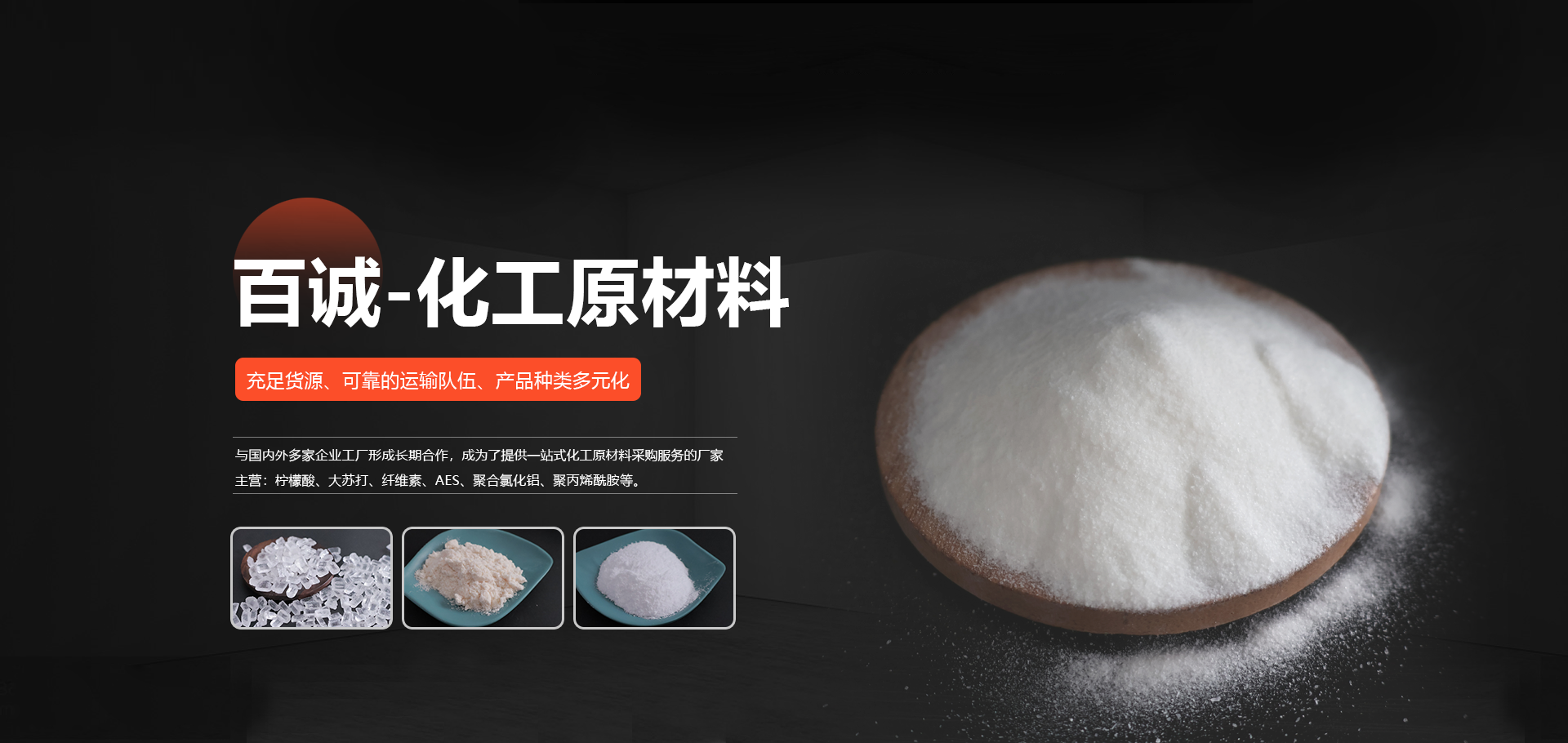 以品質贏得客戶滿意口碑成立于山東的濰坊百誠化工有限公司多年來與國內外多家企業工廠 形成長期合作,形成了競爭力的化工原材料供應、銷售和服務 渠道,主營:大蘇打、葡萄糖、檸檬酸、纖維素、消泡劑、AES等。